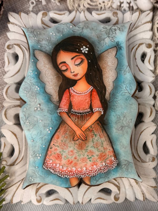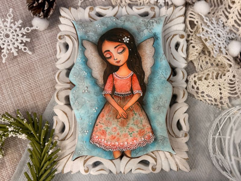 Siedzisz przy stole, a wokół pachnie świeżo upieczonym piernikiem. Na blacie leży anioł – jeszcze w surowych konturach, czekający na życie, które za chwilę mu nadasz. Bierzesz do ręki aerograf, delikatnie rozpylasz pierwsze warstwy koloru. Zarys sylwetki pojawia się jakby sam – miękko, z lekkim przejściem światła i cienia.