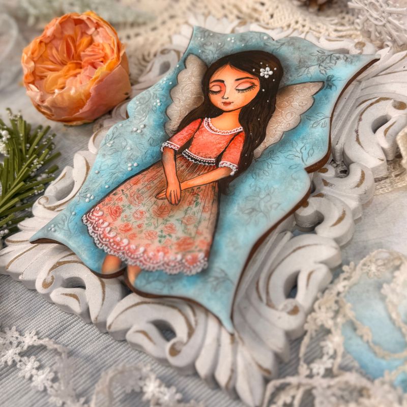 Kompleksowy kurs w którym nauczysz się łączyć dwie techniki – malowanie aerografem i tradycyjne malowanie pędzlami, aby stworzyć piernikowego anioła wyglądającego jak prawdziwy obraz.