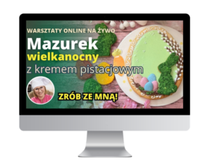 Zapraszam Cię na wyjątkowe 2-dniowe warsztaty online na żywo, podczas których wspólnie przygotujemy i ozdobimy pyszny Mazurek Wielkanocny z kremem pistacjowym – efektowny, świąteczny wypiek, który zachwyca smakiem i wyglądem.