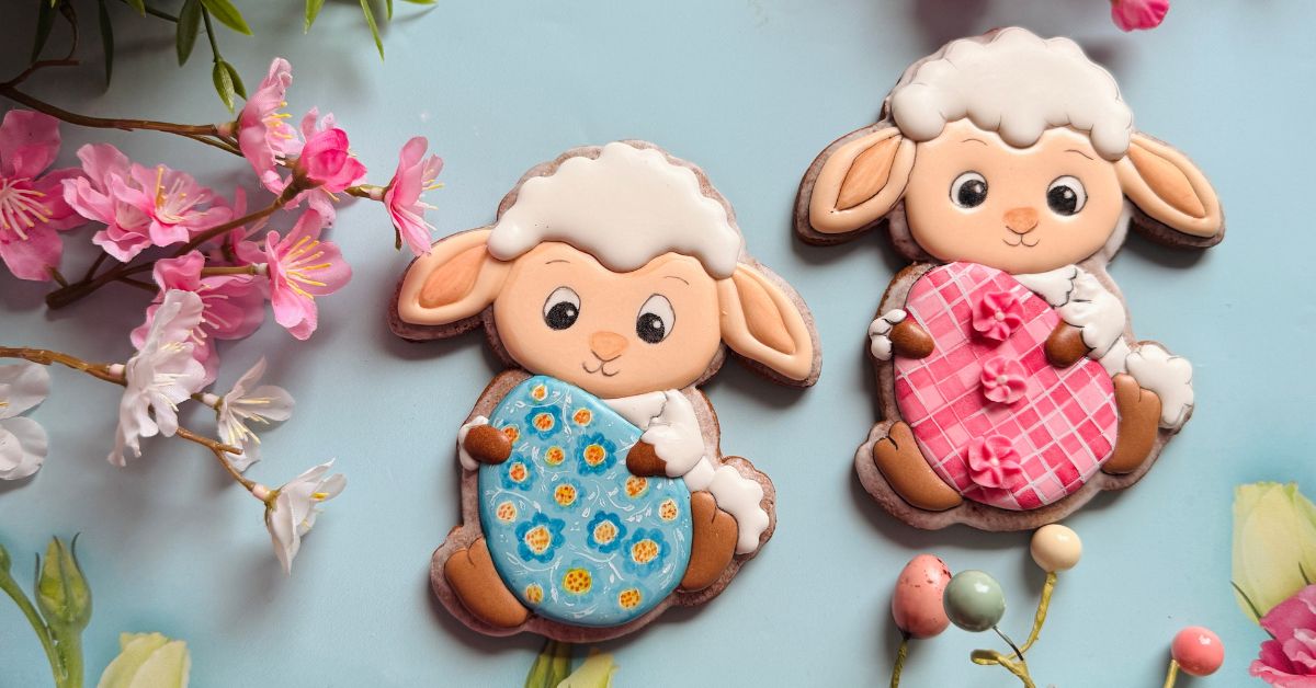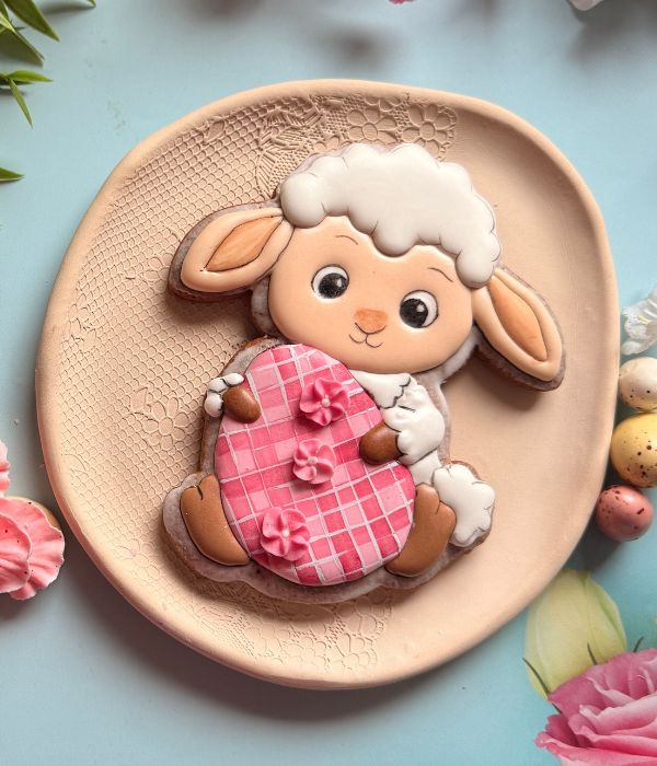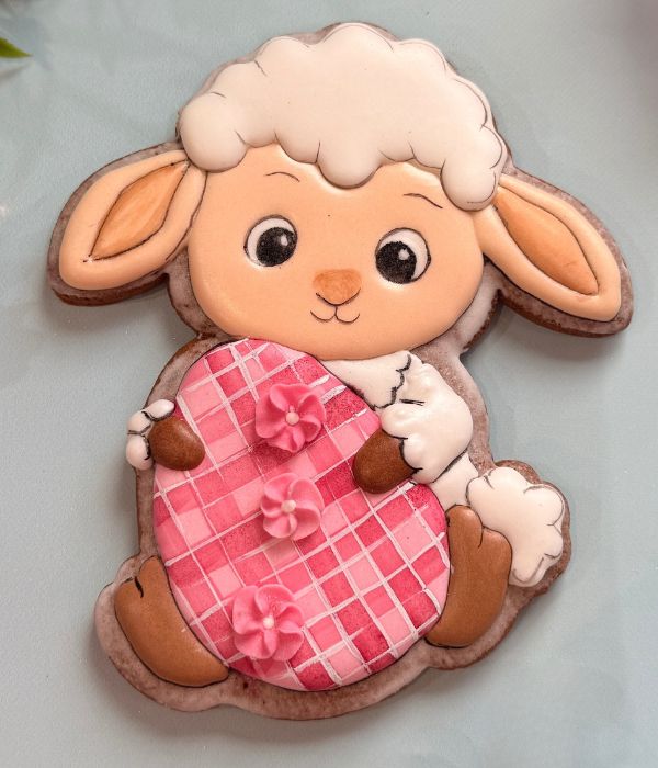 Podczas warsztatów przygotujesz 2 pierniczki w kształcie owieczki trzymającej wielkanocne jajko o wysokości ok. 13 cm. Na każdym z nich inaczej ozdobisz jajko, dzięki czemu poznasz dwa warianty wykończenia tego samego wzoru.