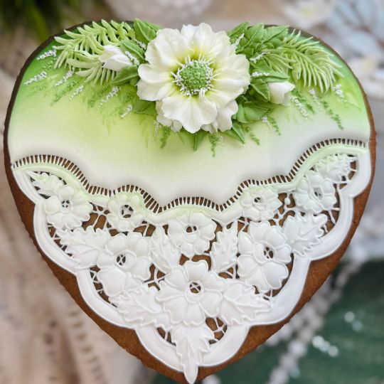 Samodzielnie wykonasz 10 pierników z wiosennymi kwiatami – każdy jako osobna, gotowa do obdarowania kompozycja: stabilna, przestrzenna i dopracowana w detalach (od lukrowania po malowanie i wykończenie).